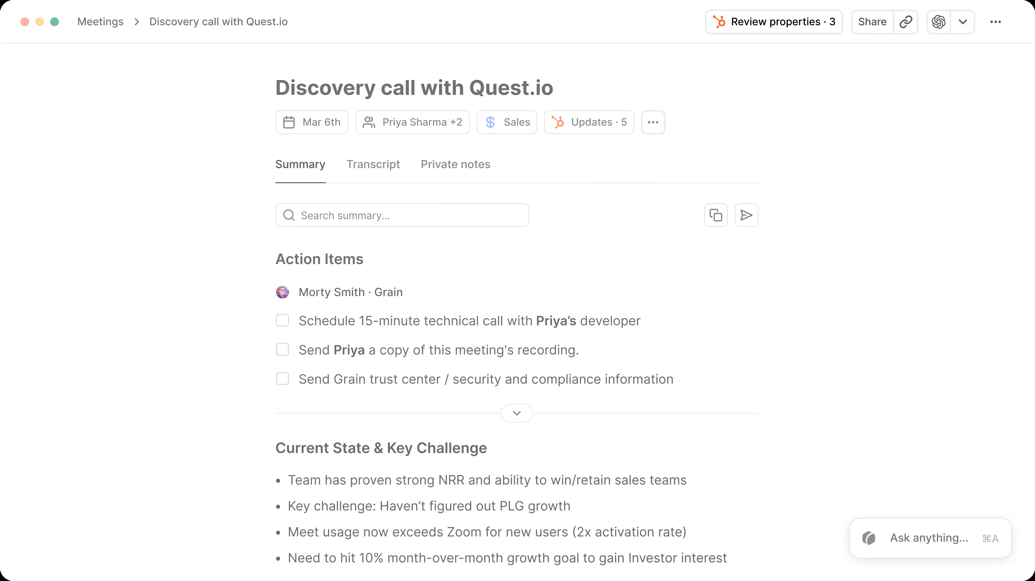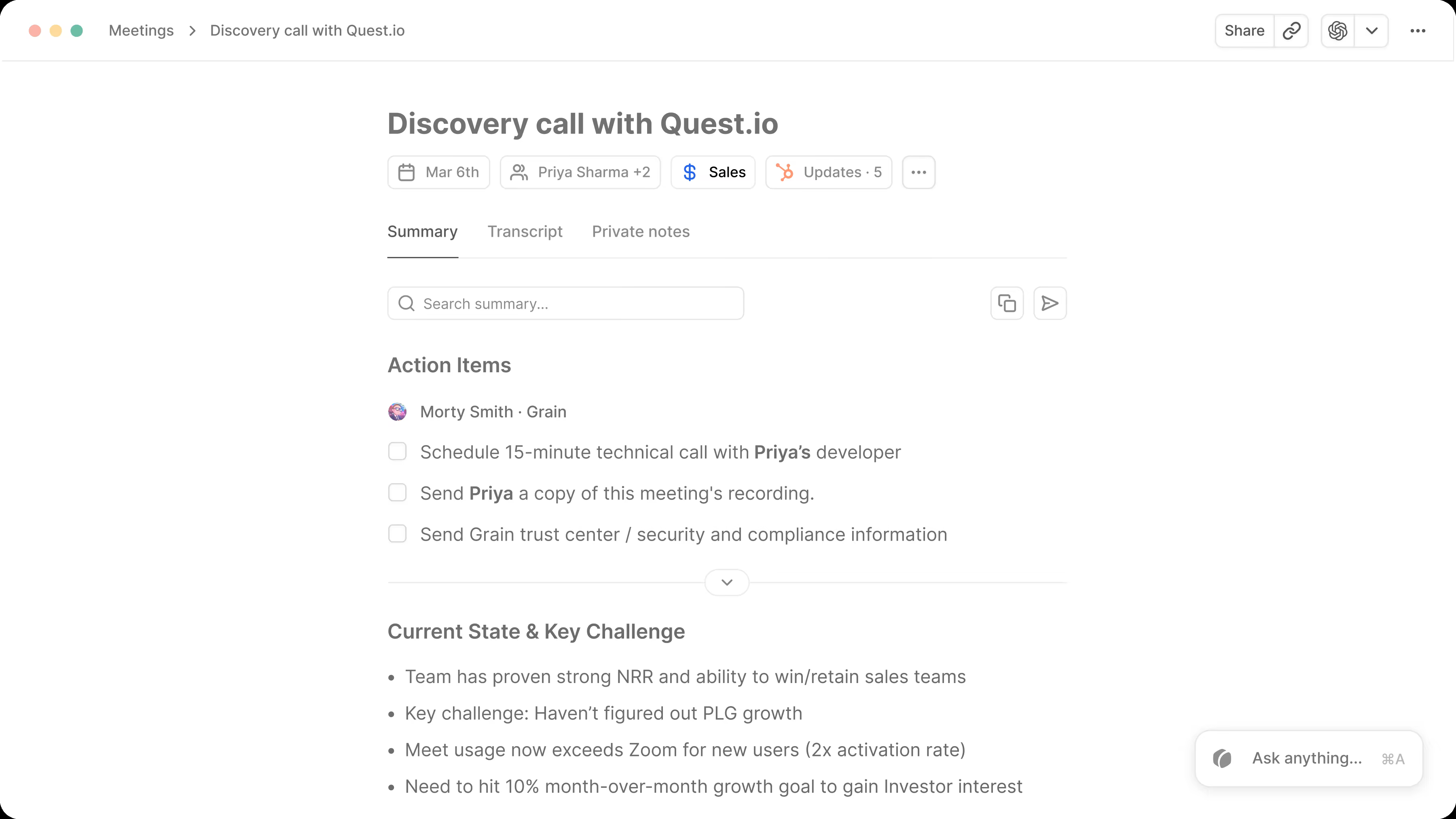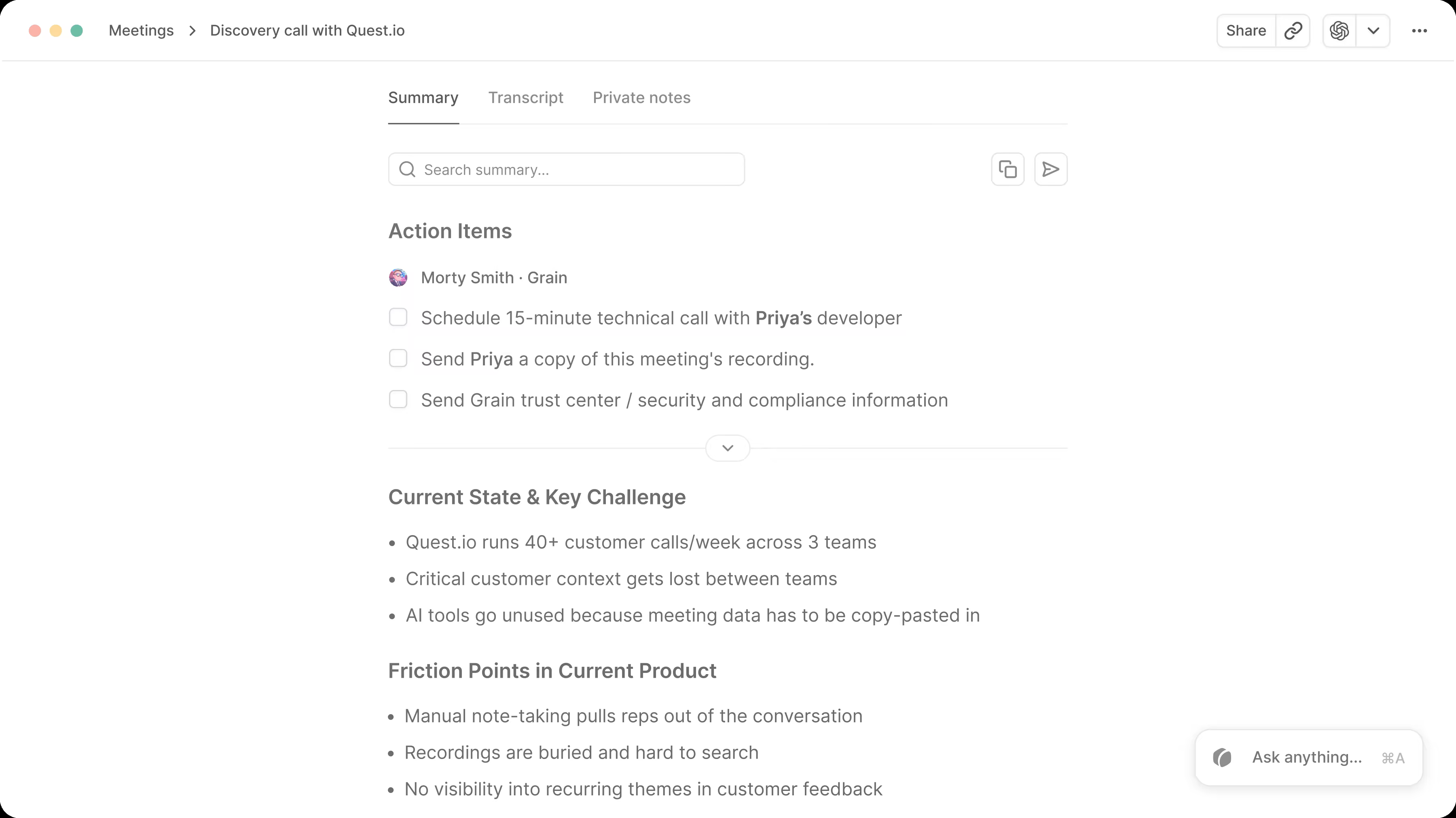 Grain captures and enriches your meetings, then delivers them to Claude, ChatGPT, or any AI tool so your agents can do the work.